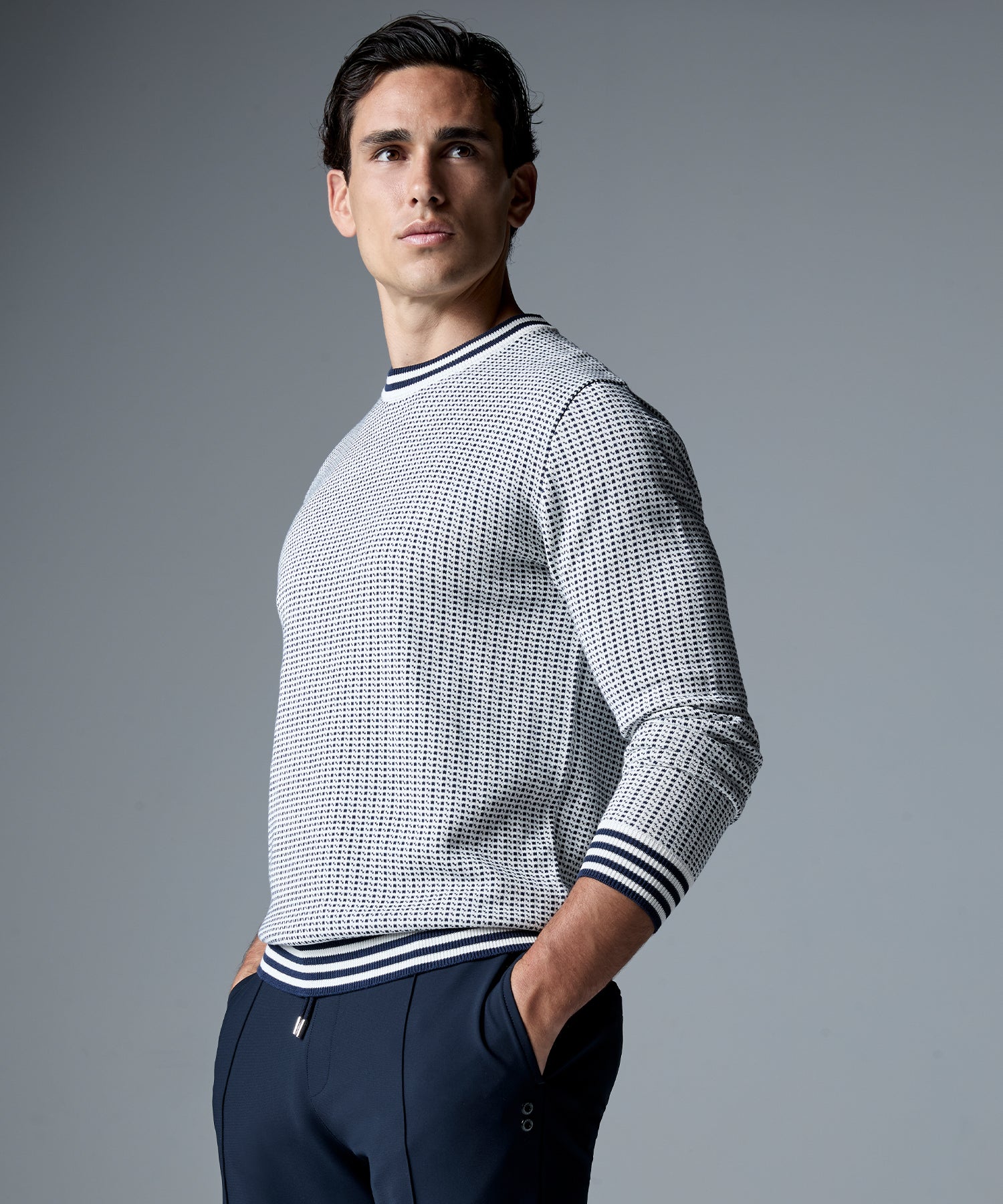 Cotton-Wool Navy Sweater w. Side Rib
