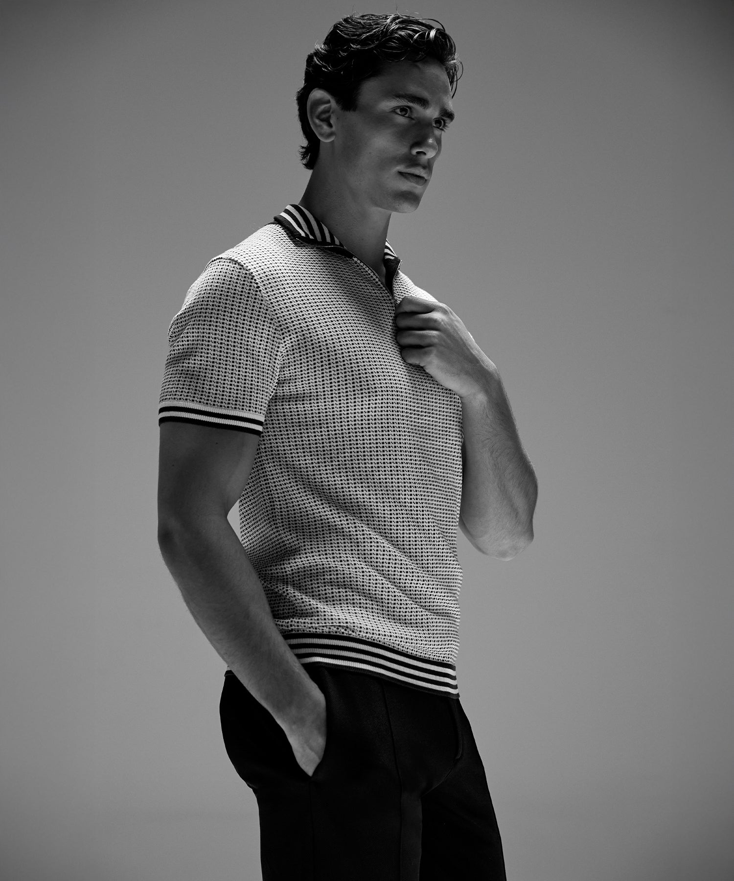 Cotton Mesh RD Polo: Grey Melange Cotton Mesh RD Polo: Grey Melange