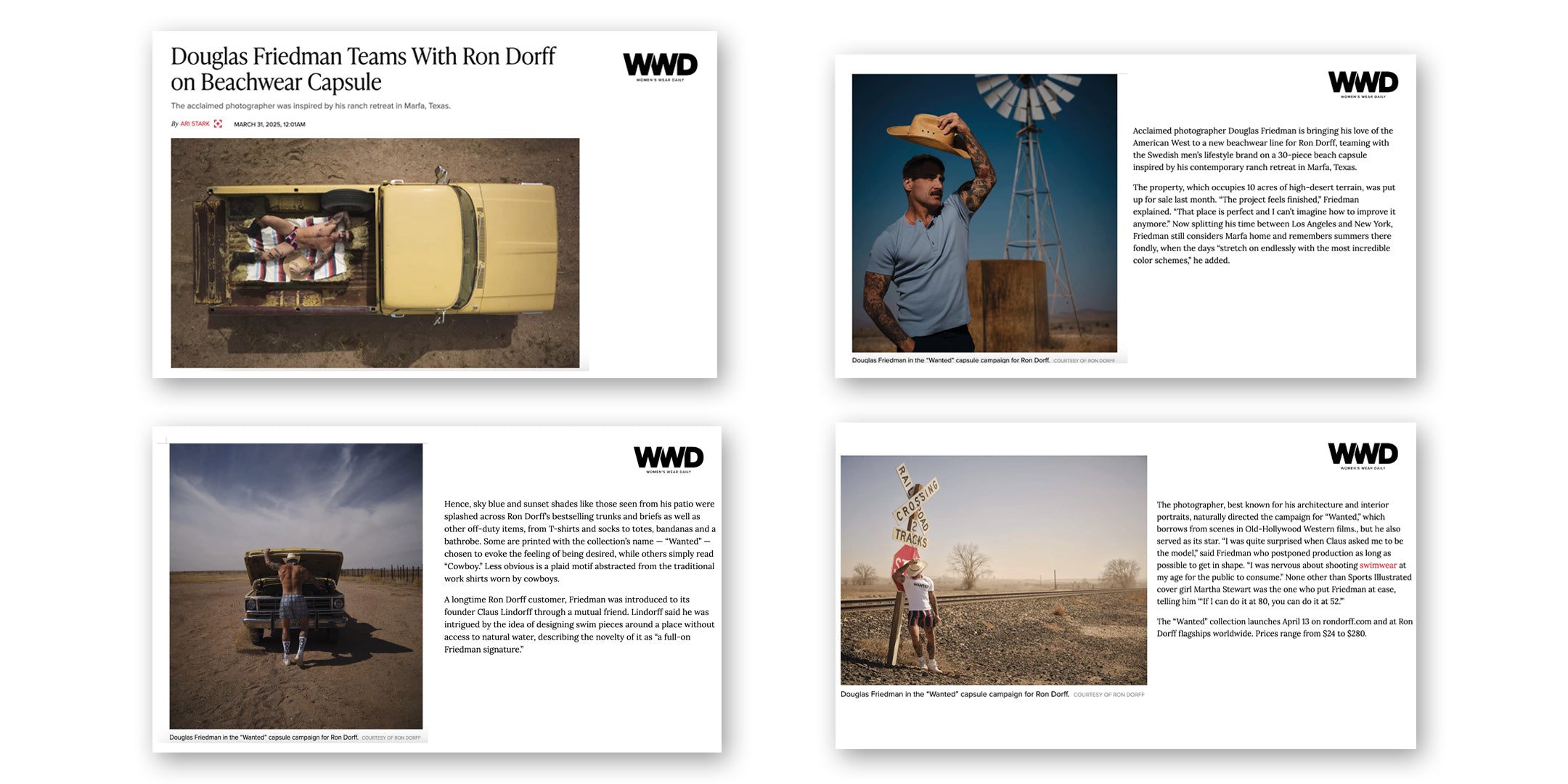 French-Swedish menswear brand Ron Dorff collaborates with Texas-based photographer Douglas Friedman for a swimwear collection that blends Scandinavian minimalism with a rugged American flair.