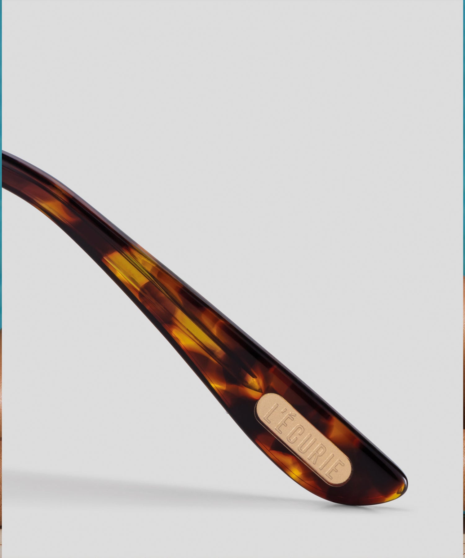These sophisticated aviator frames blend a handcrafted acetate front with engraved titanium temples plated in 18K yellow gold (Mogador Tortoise) or in 14K white gold (Marrakesh Midnight). The nylon lenses, crafted by the Rolls-Royce of lenses manufacturers, Zeiss, ensure clarity and protection. The frames embody unparalleled craftsmanship, meticulously made in Japan and in the end some of the lightest, while most resistant, sunglasses on the market. Sunglasses designed in collaboration with the French designer “L'écurie”.